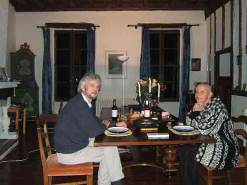 atelieret med fyr på peisen og Blanquette (fattigmanns-sjampis) og koste