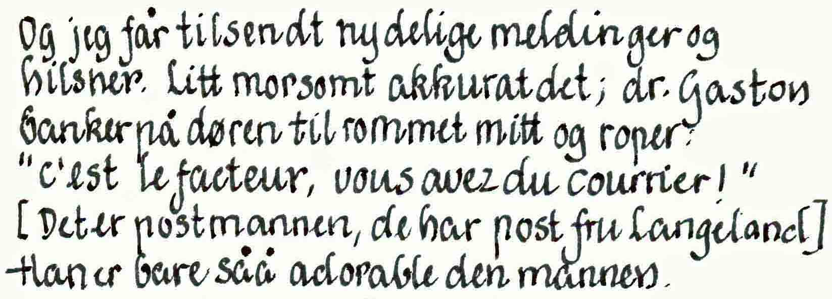 med Madame Langeland i dag. Krise! De sendte heldigvis en bil i hyrten
